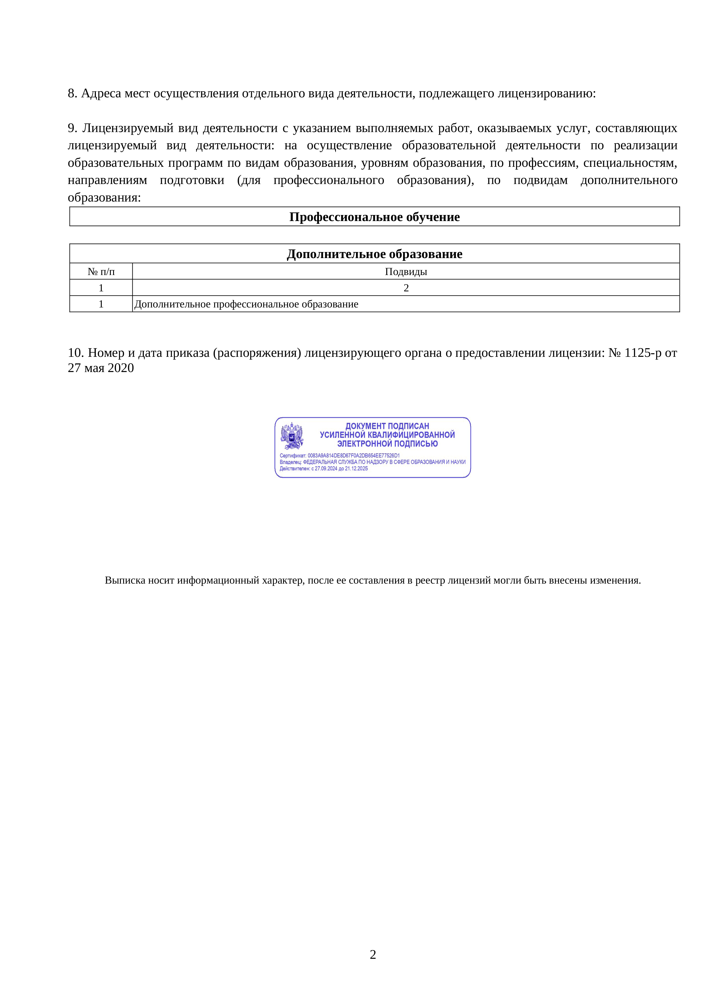Выписка из реестра лицензий лист 2